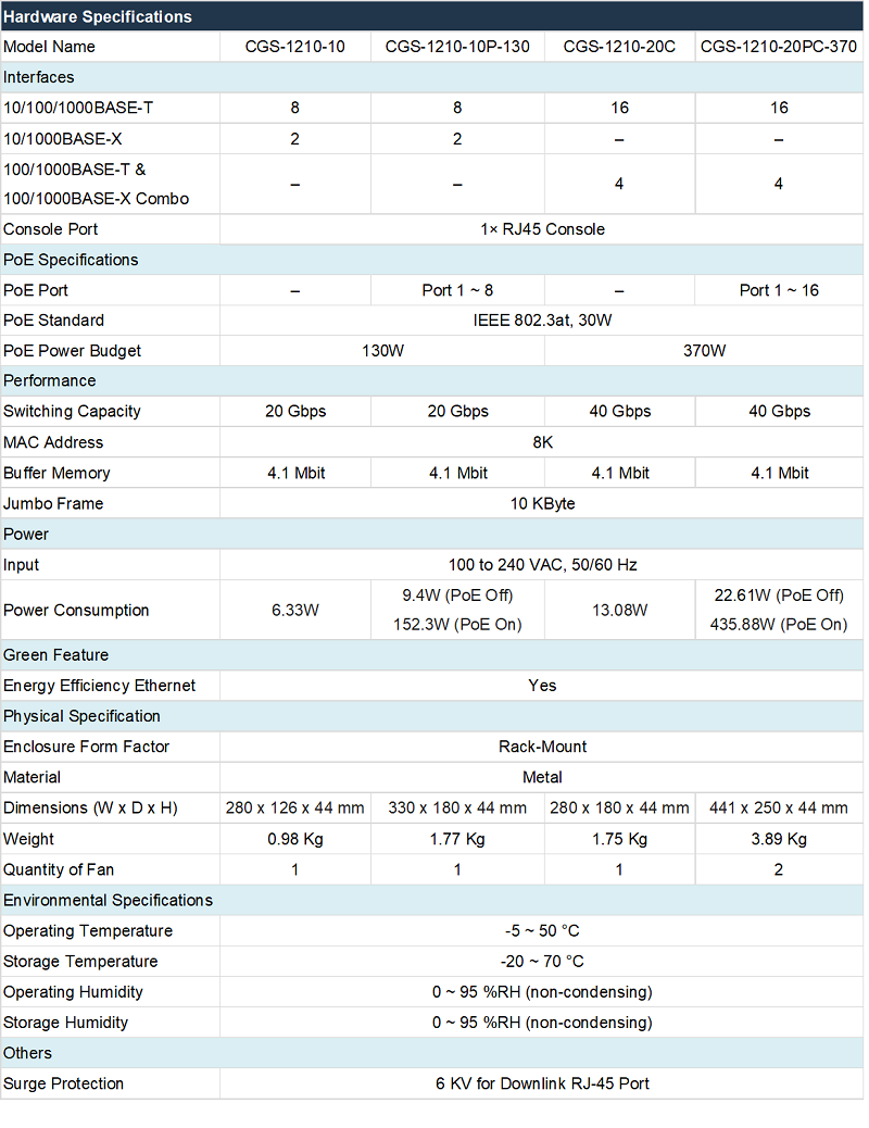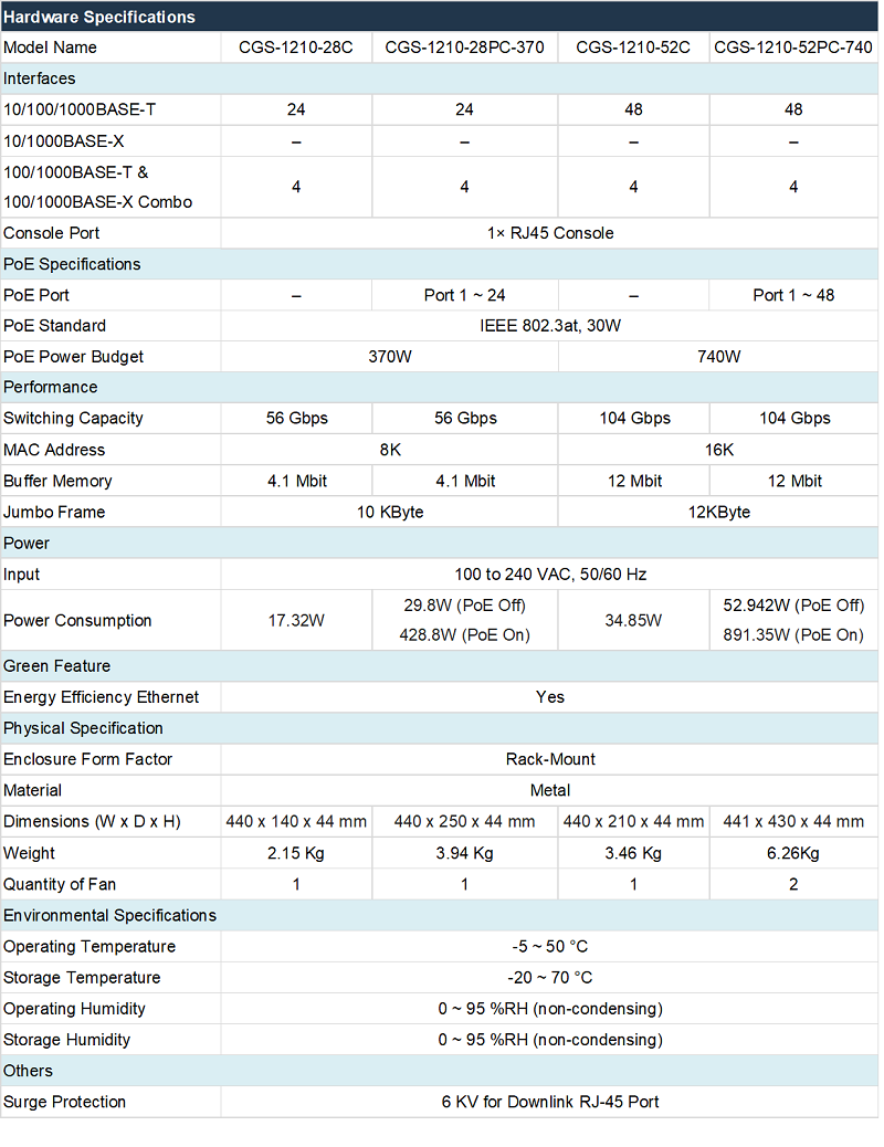 - 8/16/24/48 Gigabit 交換器,搭配 2/4 Gigabit上行端口