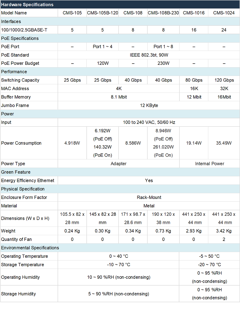 - 提供 5 / 8 / 16 / 24 個 2.5 Gigabit 埠